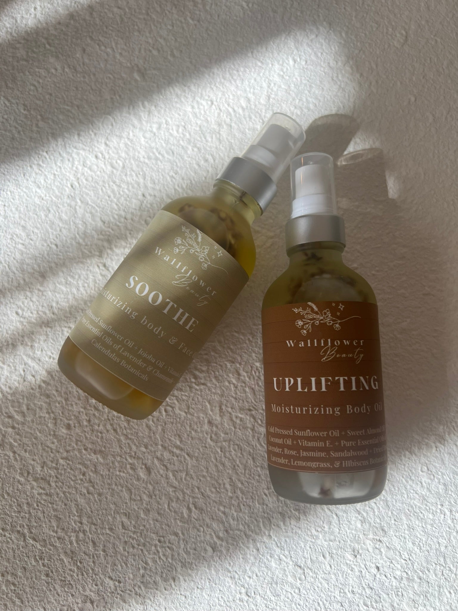 Light and full bodied with 100% all natural cold pressed sunflower oil, sweet almond oil, coconut oil, vitamin E, and pure mood boosting essential oils of Rose, Sandalwood, Jasmine, and Lavender. Infused with dried botanicals of rose, lavender, lemongrass, orange, and hibiscus.